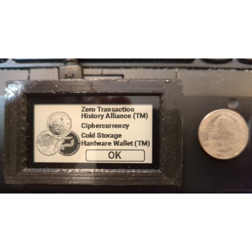 The Zero Transaction History Alliance Ciphercurrency Hardware Cold Storage Wallet device stands ready to help you retain your financial autonomy and self-ownership in this modern world filled with threats both big and small. This device is tethered to your PC (and soon your phone) with a USB cable and our Cipher Bridge software. Cipher Bridge is the link between the Cipher Wallet and your existing Pirate Chain Treasure Chest wallet software. This device has a Kindle-like e-ink touchscreen for on-device PIN unlock and control. All sensitive actions come through as requests you initiate from your host system. NOTHING can happen on the device with your express approval on the device's touchscreen itself. This device is designed to conform to the highest security standards. We take extreme security measures when shipping this device to you, in order to mitigate shipping interdiction attacks by nation states. As a tethered device, it is fully air-gapped and dependent on the host system for all software updates, facilitated by the Cipher Bridge program.